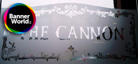 Glass-etch vinyl or window frosting is a semi-transparent self-adhesive vinyl which gives the effect of etched or frosted glass. Usually applied from the inside of the window, glass-etch is often intricately cut with lettering and designs.