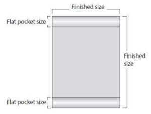 200mm clear area is needed at the top and the bottom of the artwork. This allows 150mm for the pocket and 50mm for the weld. Please ensure no text or logos enter this area. Background colour and background images are fine to enter the pocket area.