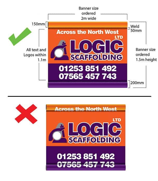 Traditional scaffold banners generally have a 125mm flat pocket top and bottom as a standard scaffold tube is 50mm diameter. Please ensure you measure the thickness of your tubing before ordering