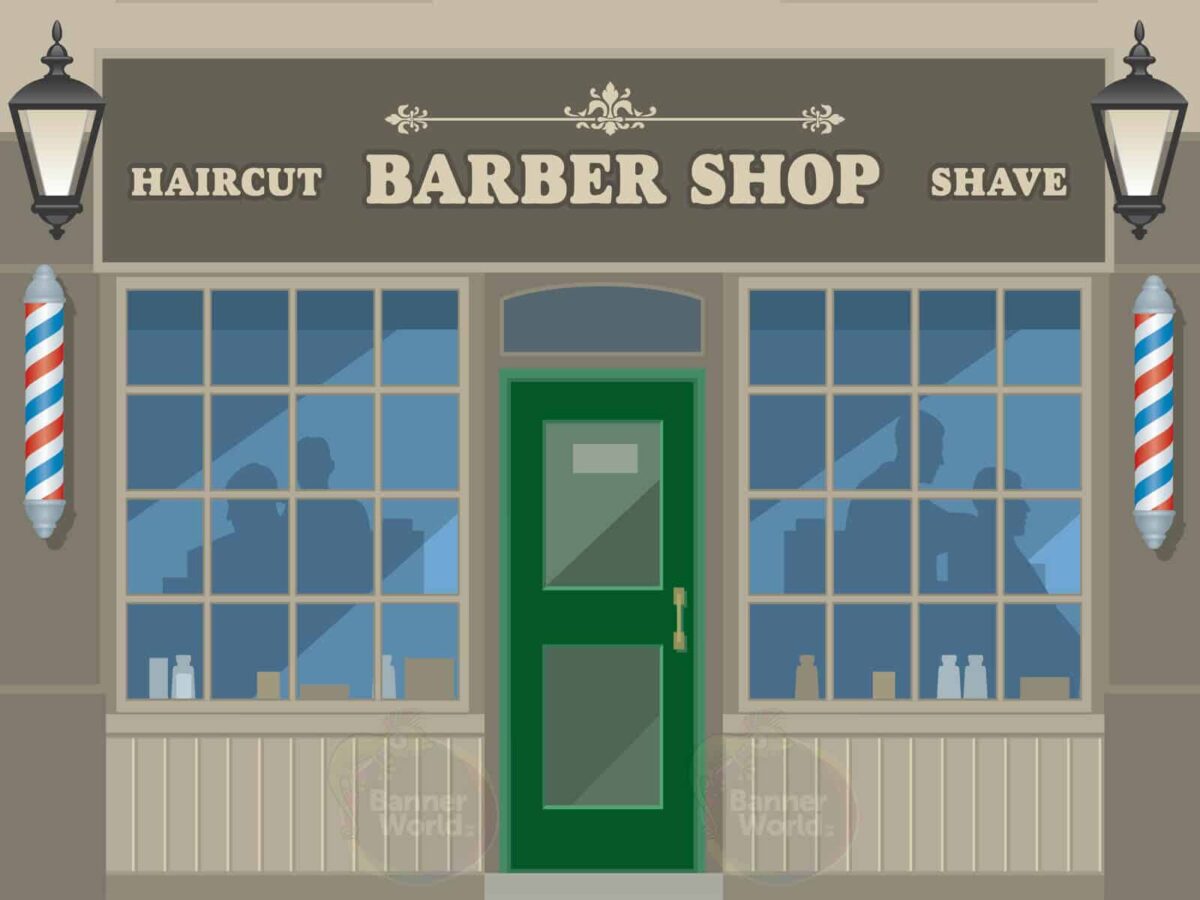 As standard this mural measures 3200mm wide x 2400mm high but can be adjusted before printing to fit an exact size. The name of the Barbers can also be altered before production to suit your requirements.