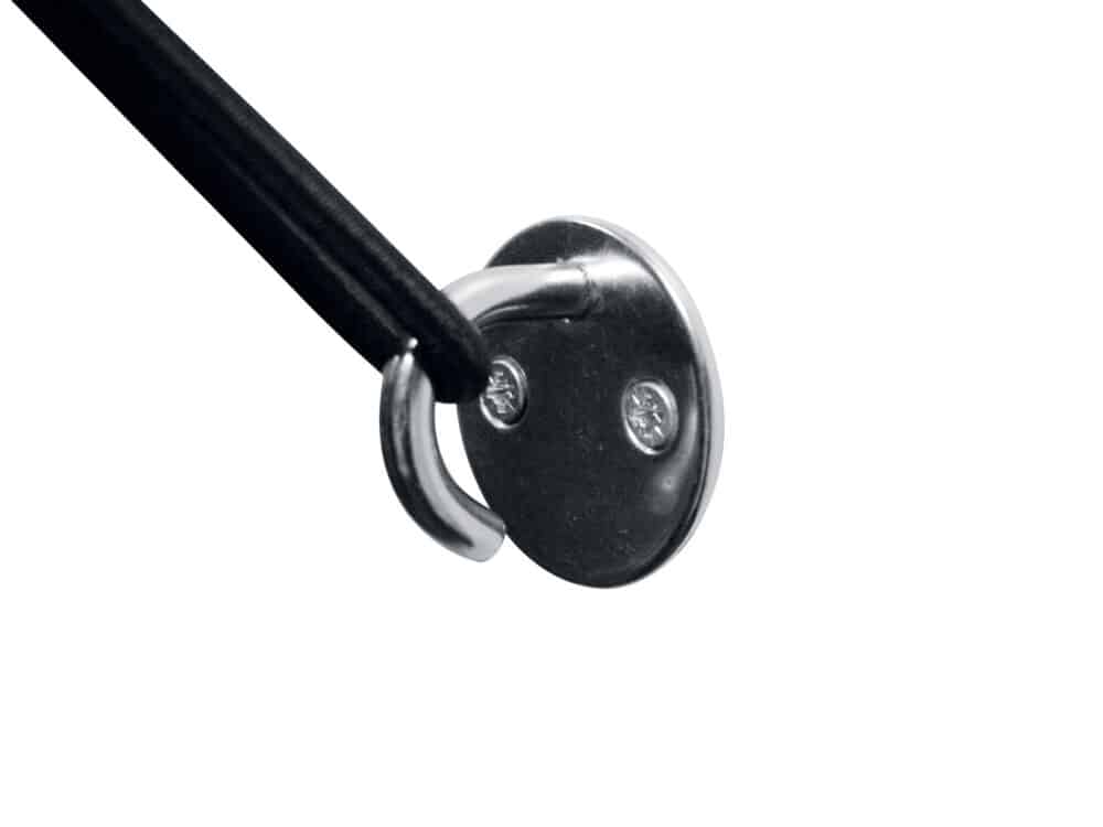Stainless steel wall fixing hooks for Bungee Ties. Each receiver comes with two screws and wall plugs and can be used with our Barrier Bungee Ties.