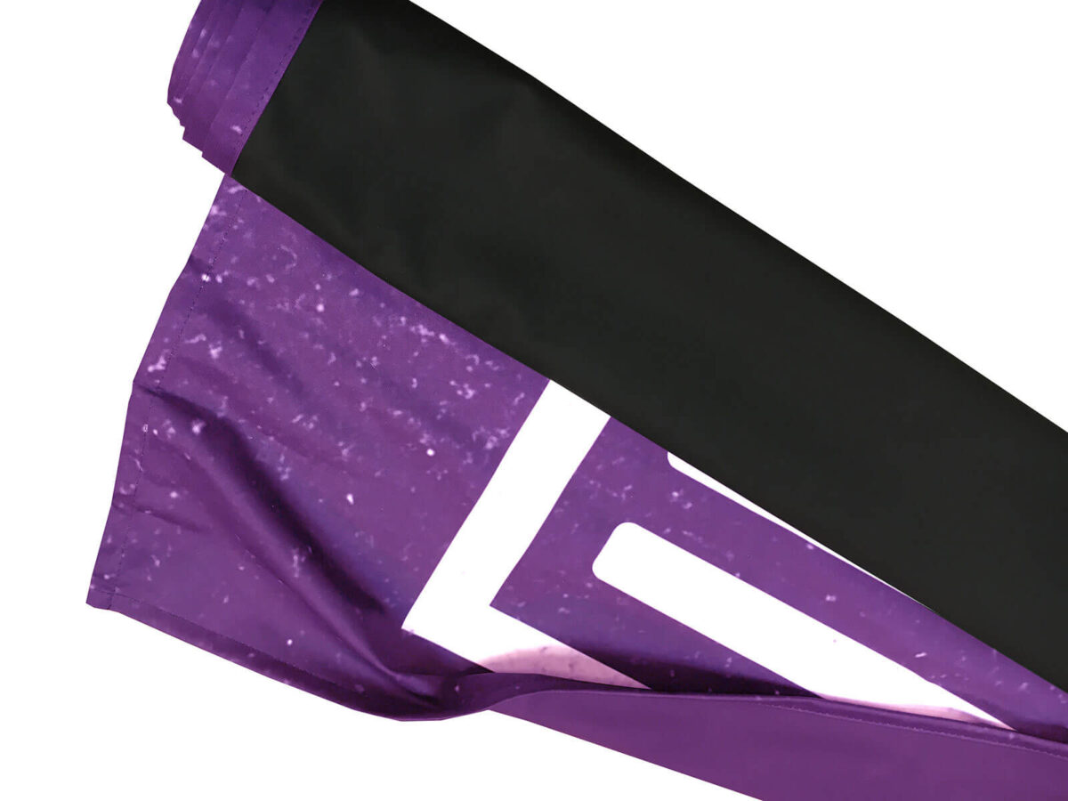 We manufacture high-quality Fabric Blockout Banners. Our fabric light-stop banners are made from a special black-back polyester material that acts as a light-stop, preventing light from passing through the banner’s face. Our fabric blockout banners are perfect for both outdoor and indoor applications, providing a premium alternative to traditional PVC banners made from vinyl banner material.
