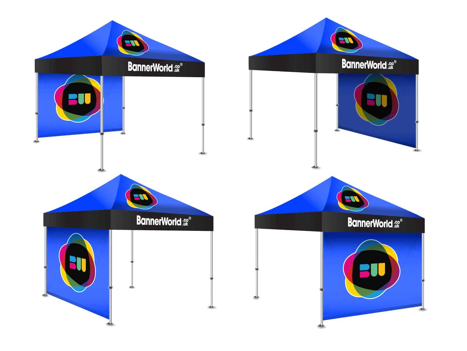 Use our on-page gazebo builder to configure your tent easily. Select the number of frames which come complete with a fully printed roof. Then select the walls you require. The walls you choose will depend on the intended use of your Gazebo. We offer the options of half-height walls and full-walls which are available in the following options