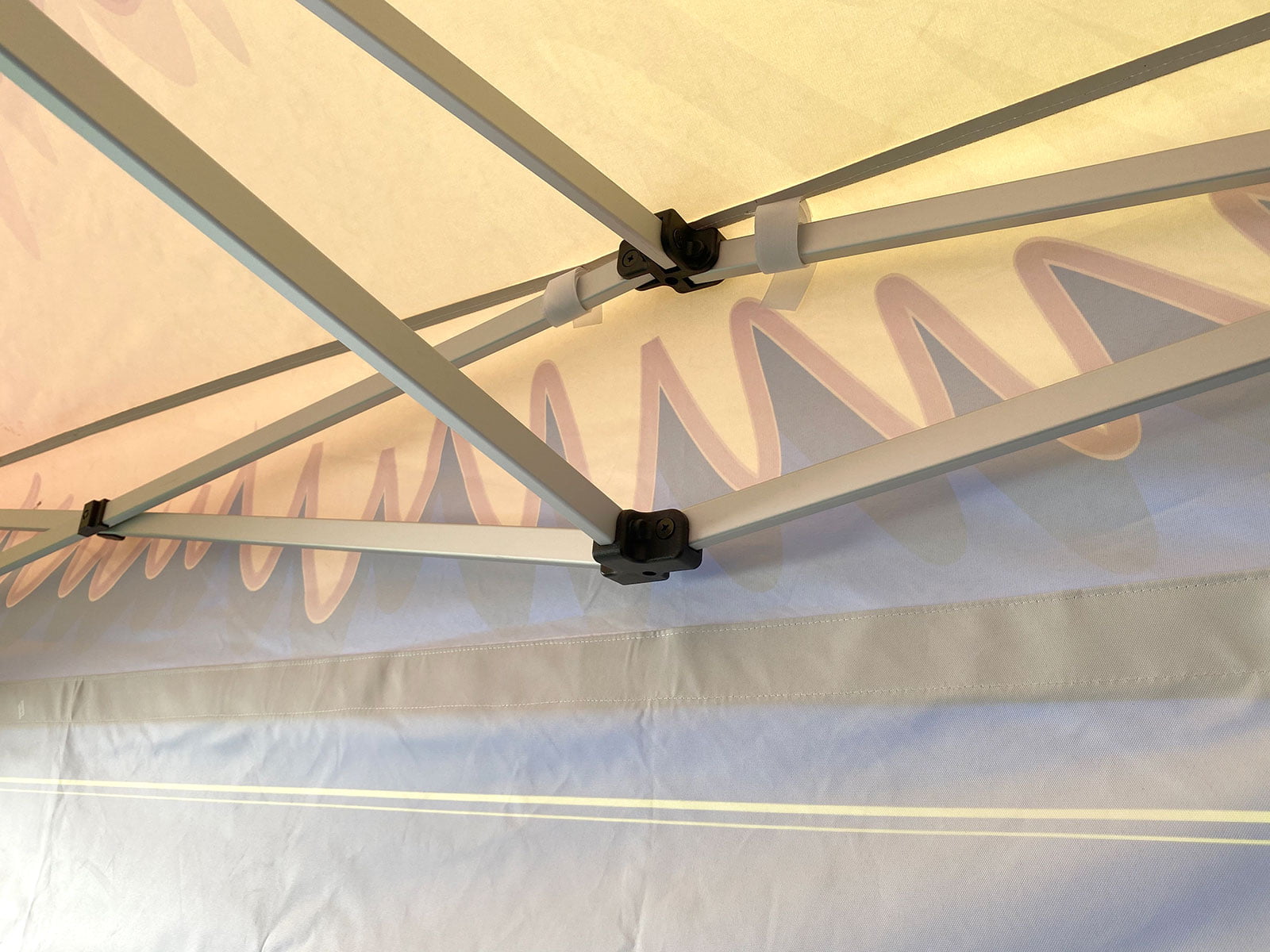 Our gazebo frames use only the best materials and high-quality components. Made from mostly all aluminium which is the best material as it offers lightweight construction a third lighter than steel which means the integral structures can be thicker, creating much-needed rigidity. Our frames use a 40mm double hexagonal profile. Hexagonal tubes increase the strength of the legs of the frame even further making them strong and stable. The aluminium is jointed together using top quality High-Density Polyethylene plastic components giving super durability and life expectancy.