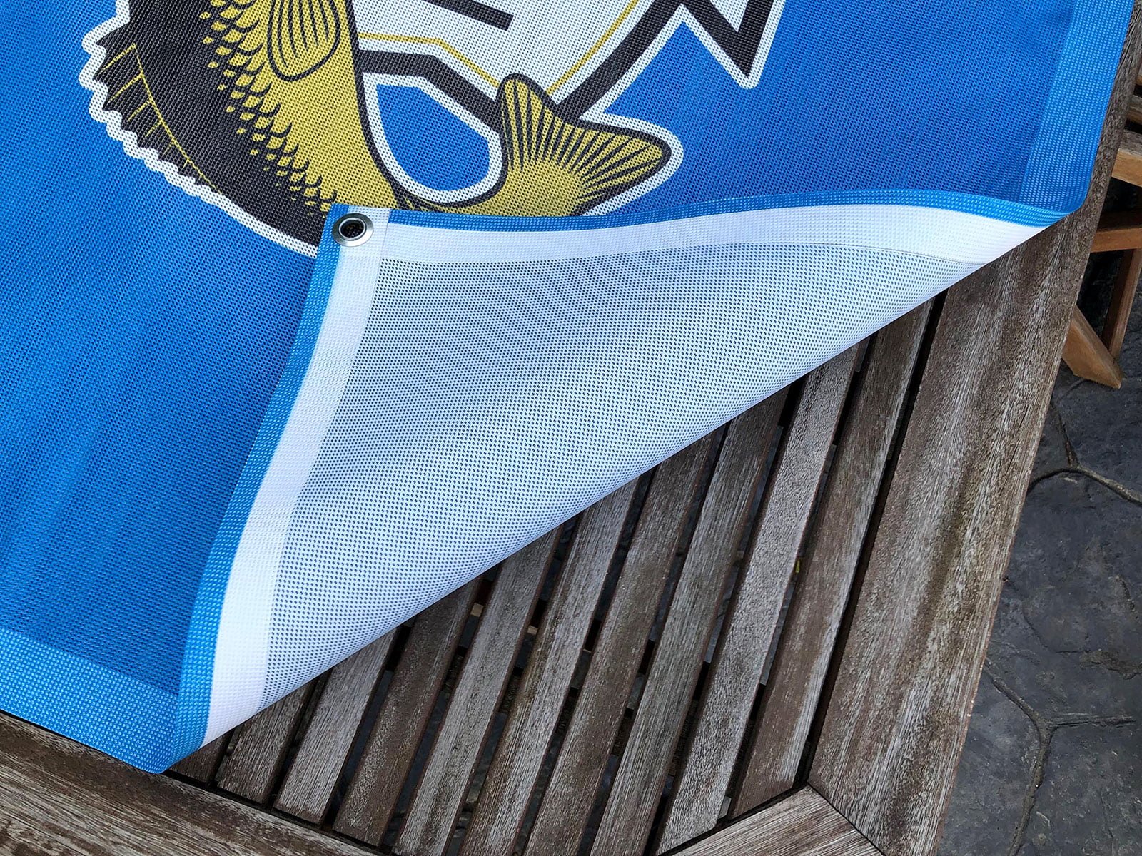 Mesh PVC banners are hemmed using high frequency welding which is stronger than stitching.