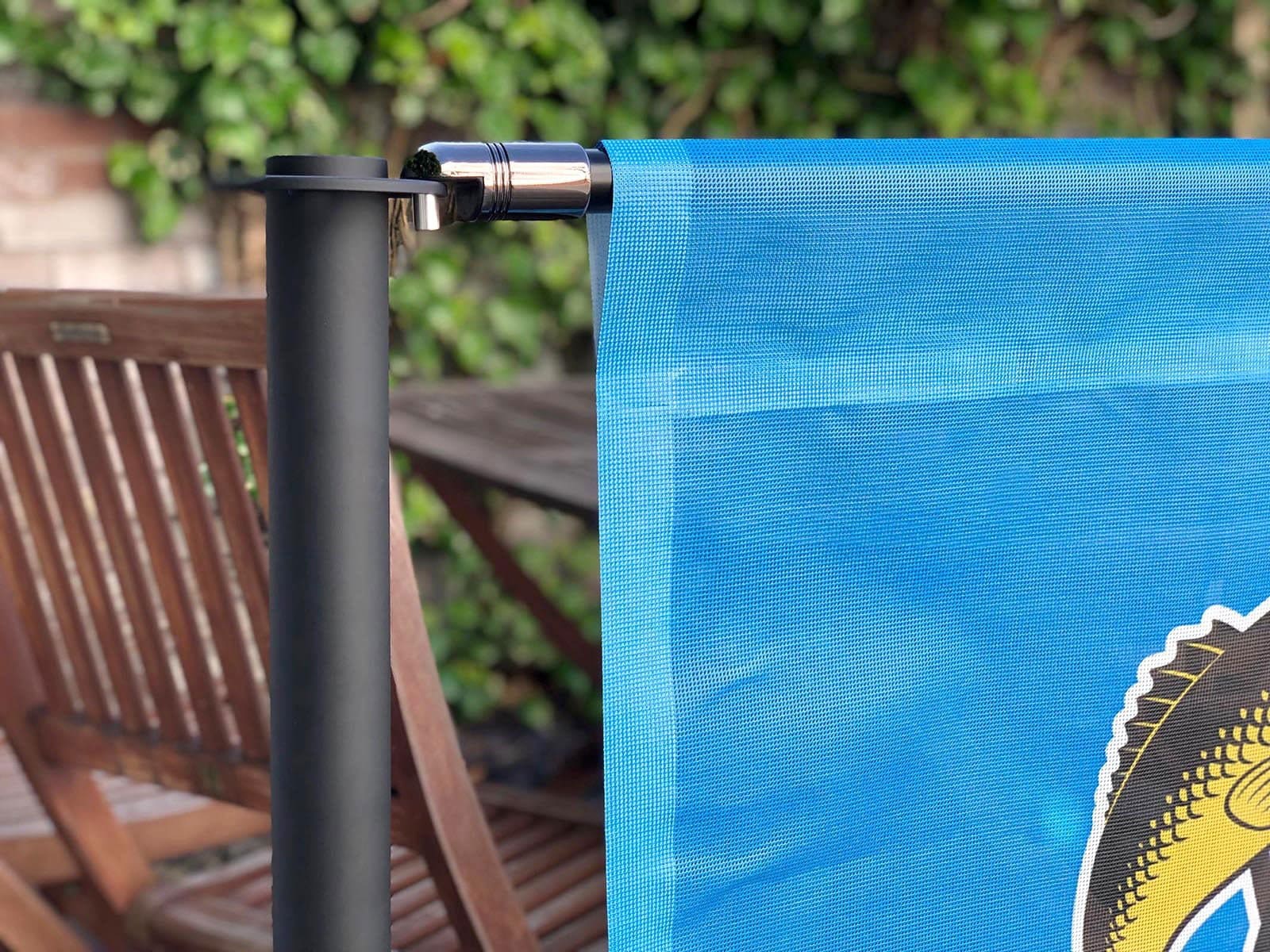 If direct sunlight is an issue at your location, consider specifying our Canvas Cafe Banners which are made from dyed canvas fabric and printed onto using spot colour.
