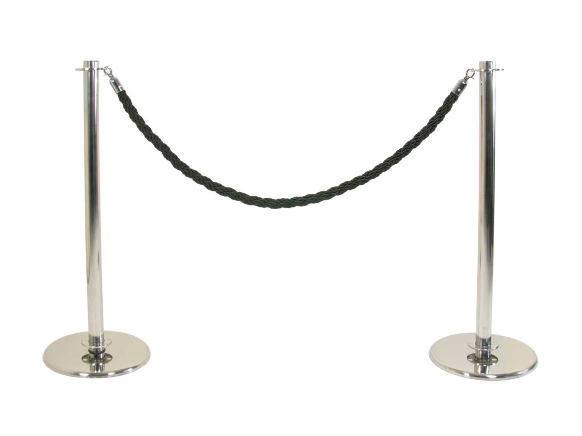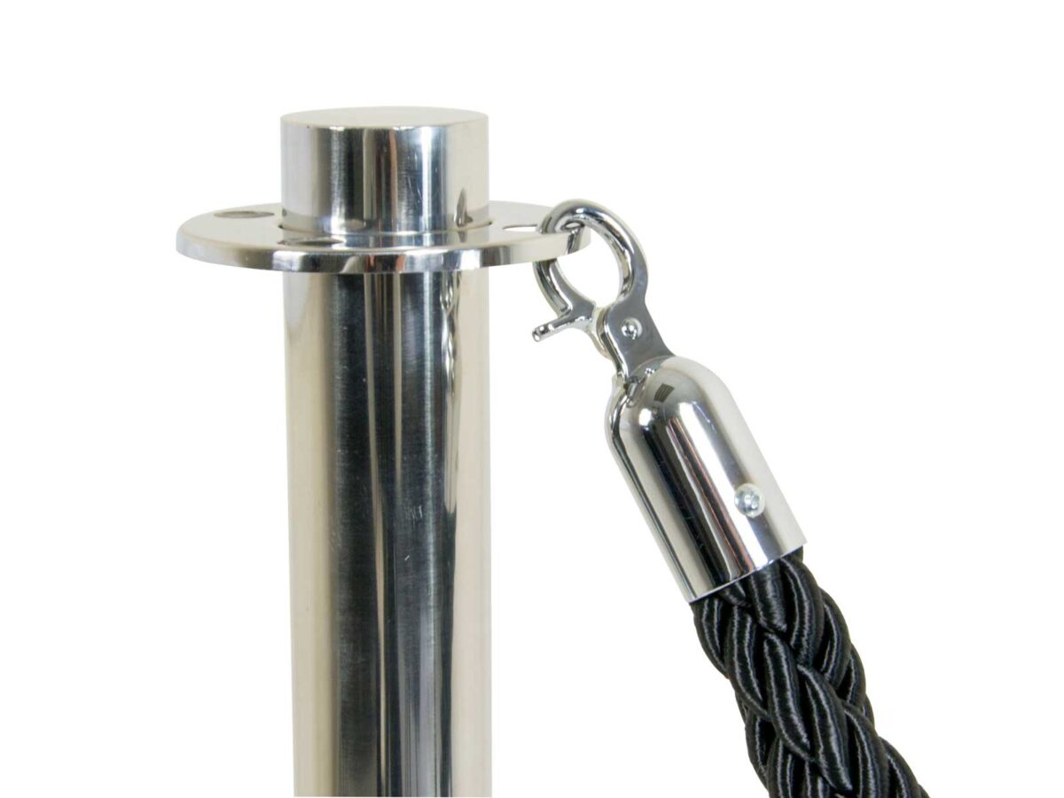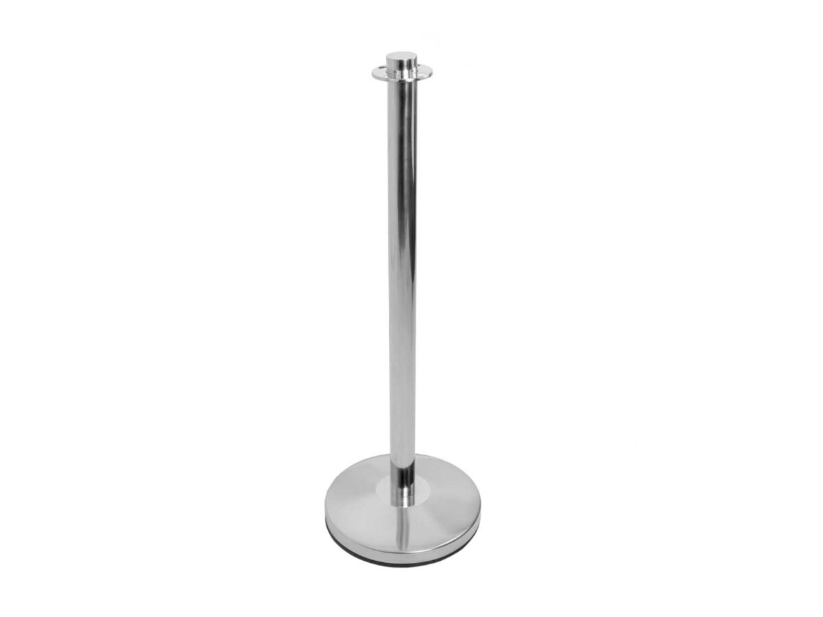 Stainless steel Rope Barrier base, post and flat top with a total weight of 7.5kg. 940mm height. Simple 3-part kit with screw-in assembly.