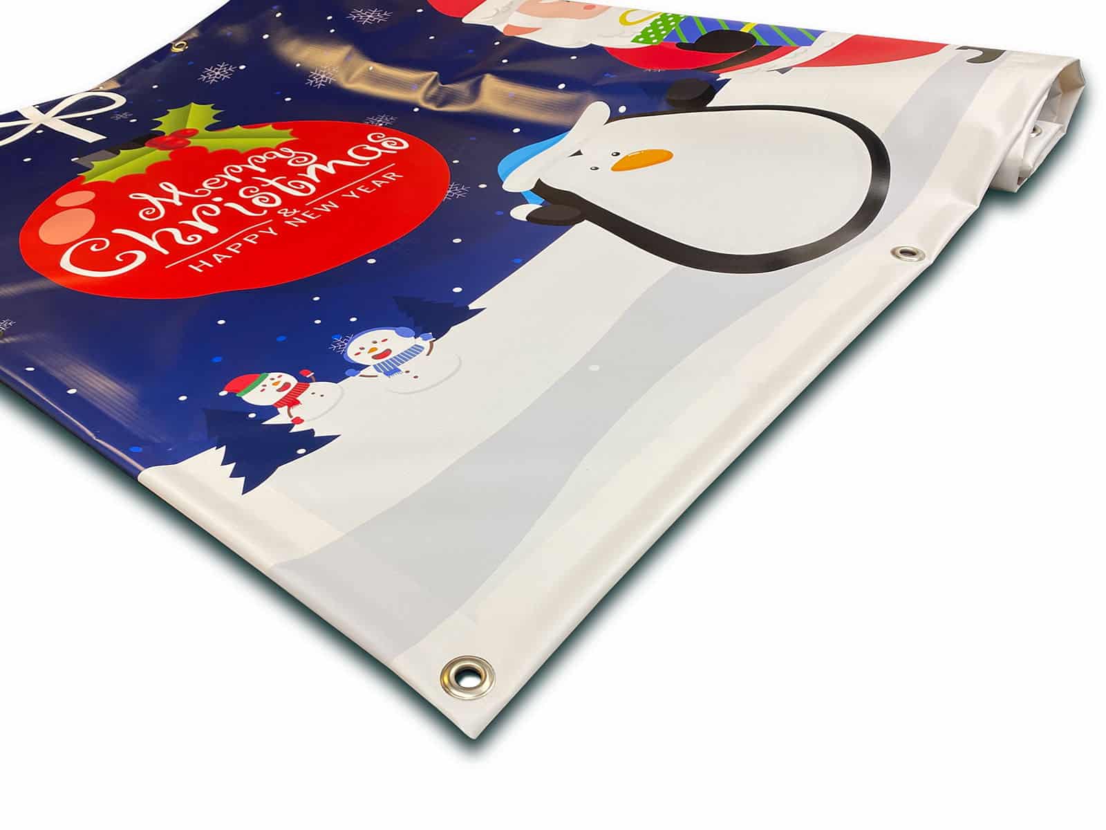 As we are the UK’s leading banner printer, you can use our banners indoors and outdoors. All Christmas banners use UV stable, high-quality outdoor grade inks, which will last for years. Our custom banners come complete and finished as your requirements. You can select from hem and eyelets, pole pockets and other finishing options.