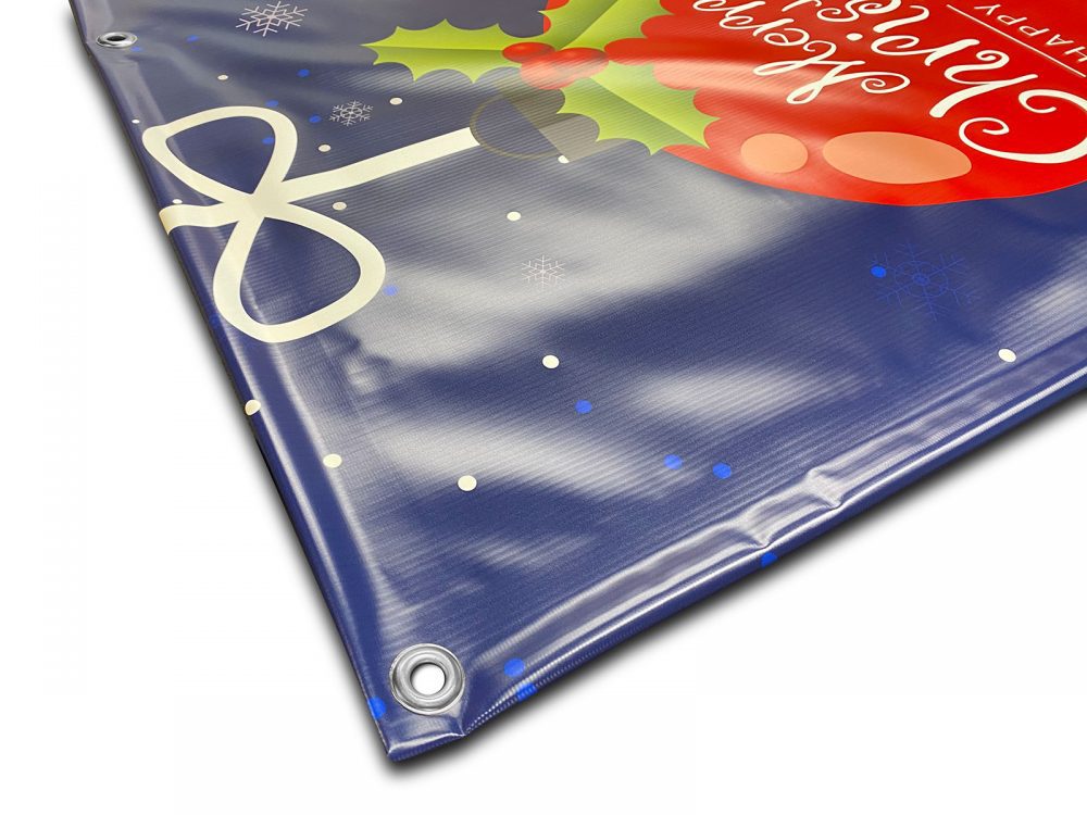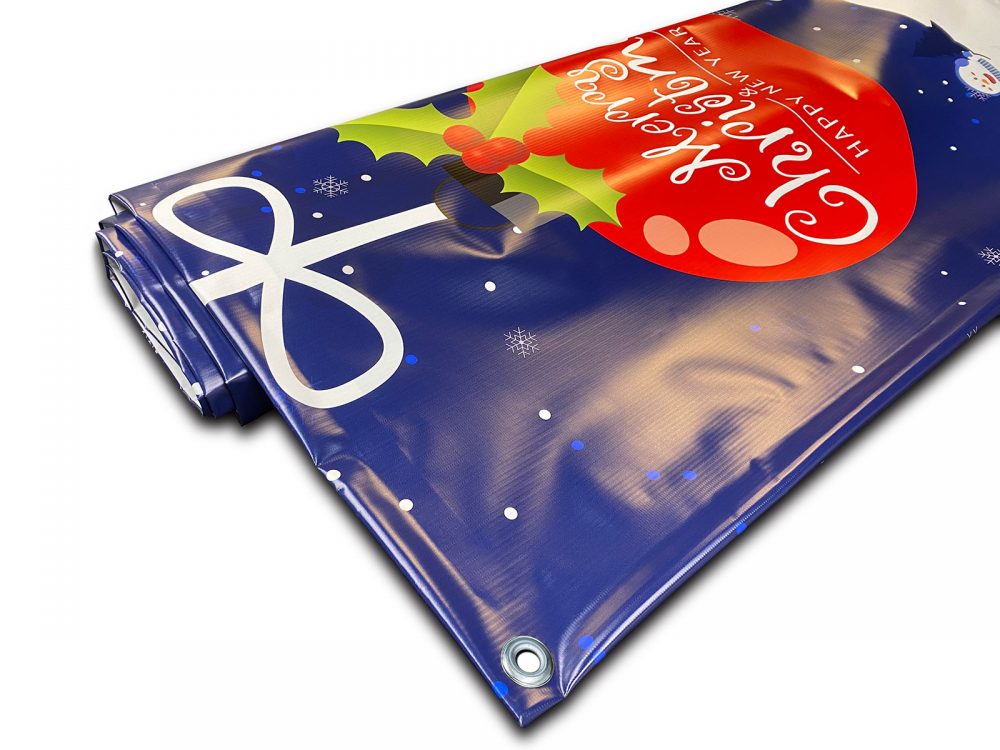 Our PVC  banner material is weather and flame resistant. We finish your banners to your specific requirements. We can make your banners with hem and eyelets, pole pockets or customised finishing. We print these banners at up to 2.5m in ONE dimension. Our Christmas banners are a cost-effective solution — ideal for short to mid-term external use. For example, your banner could be 2.5m wide x any height, or 2.5m high x any width.