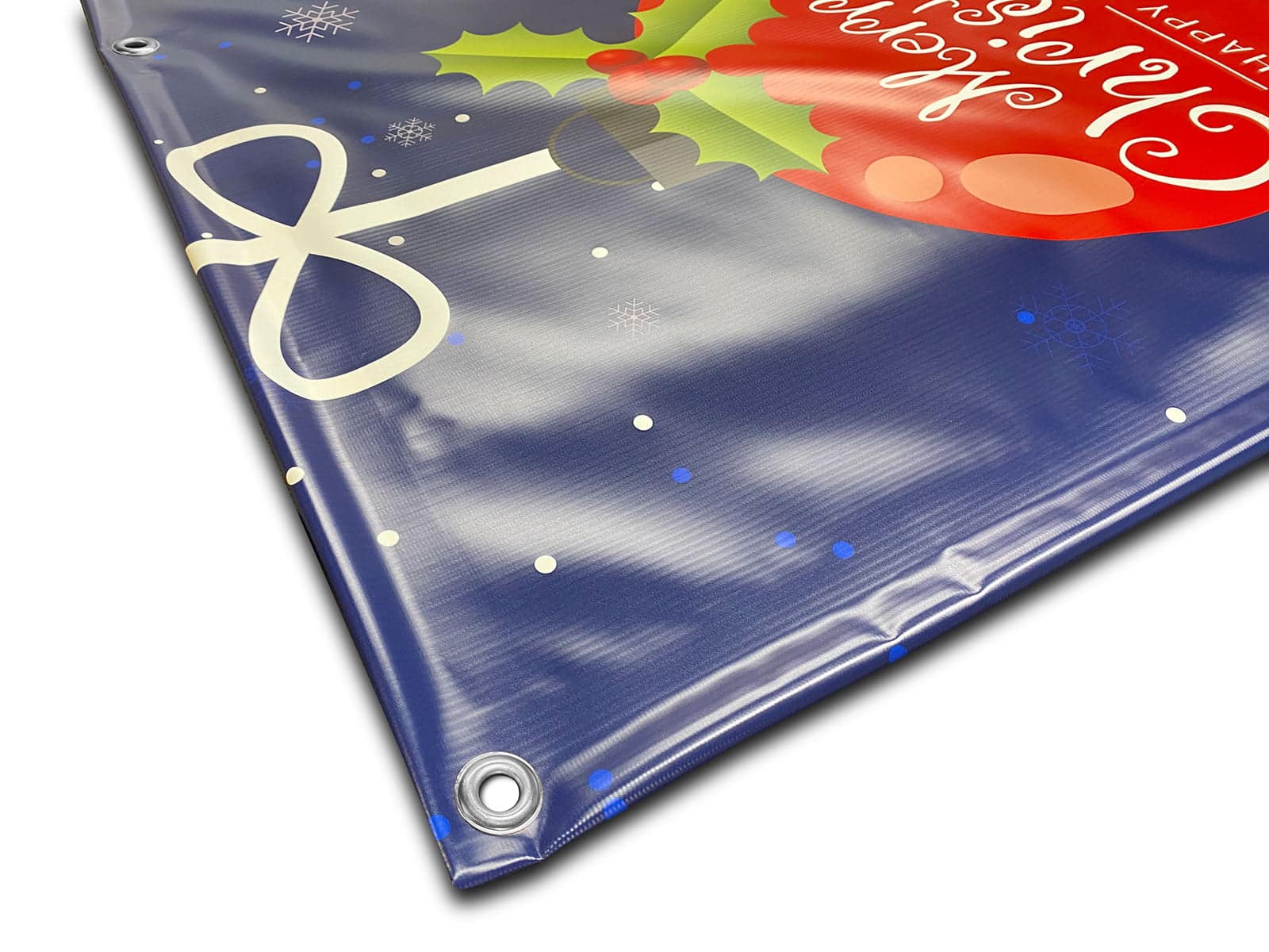 Christmas Banners are printed using high-quality UV print technology. This print process allows us to quickly make high-quality banners that will stand up to the elements.