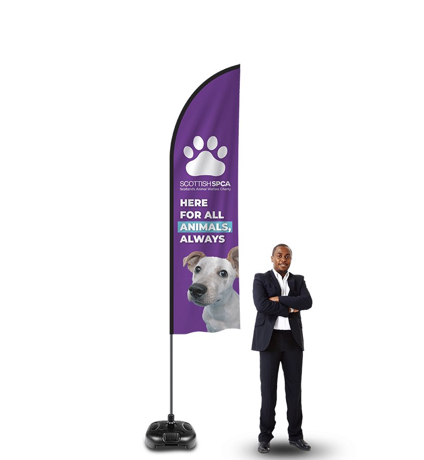 Banner World is the UK’s leading supplier of printed feather flags, offering sail flags in full-colour designs using dye-sublimation printing for deep, vibrant colours. Our feather banner flags are available in a variety of shapes, styles, and sizes to meet your needs, whether single-sided with a mirror-image reverse or double-sided with a block-out liner for clear designs on both sides.