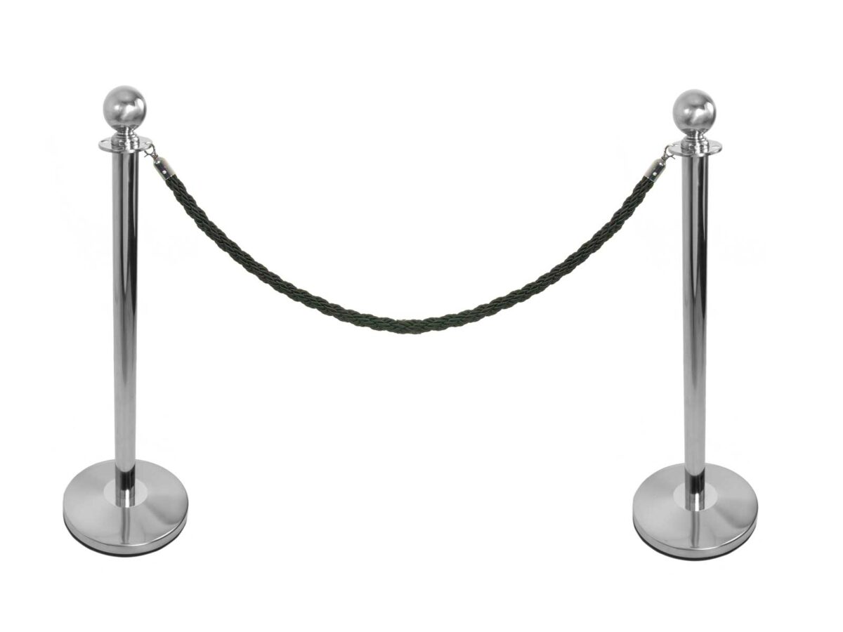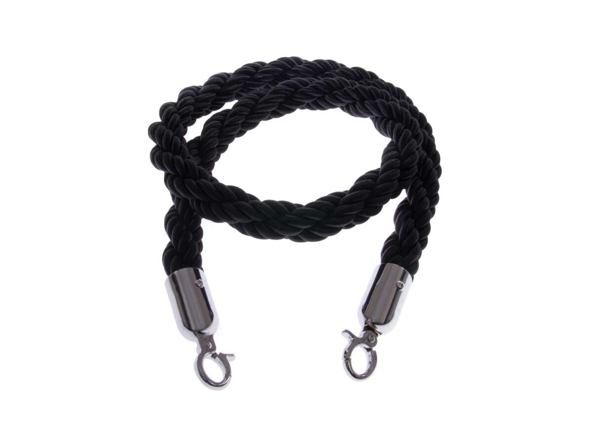 Twisted Rope 1.5m. Terylene outer with a cotton core, 28mm diameter. Spring-action chrome-finish clips. Suitable for indoor or outdoor use.