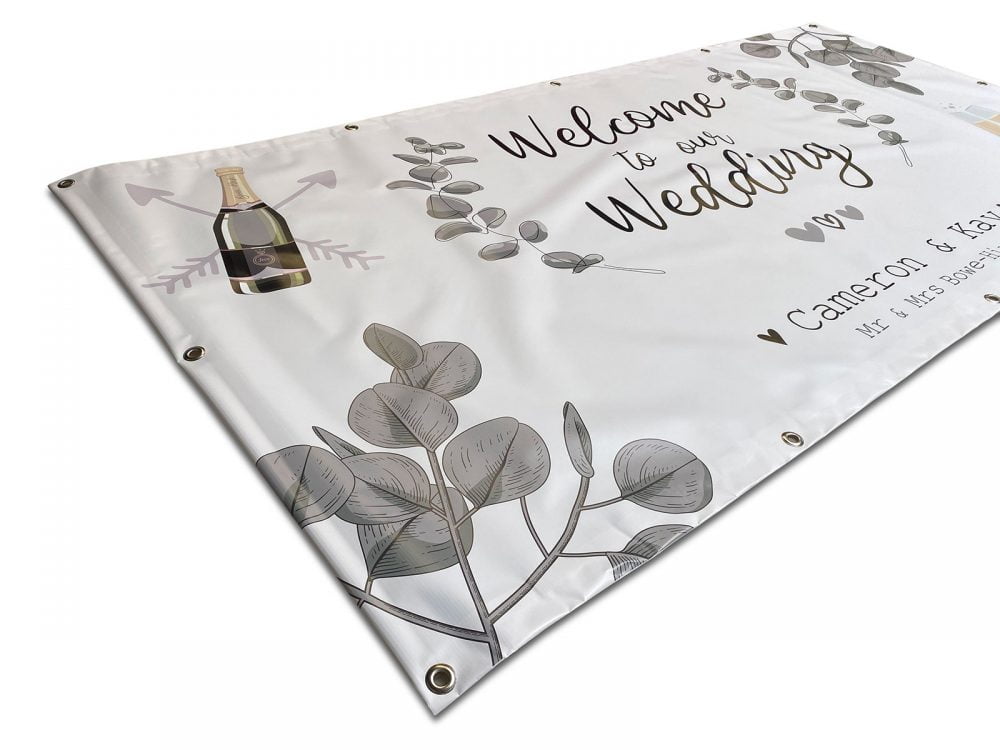 As we are the UK’s leading banner printer, you can use our banners indoors and outdoors. All wedding banners use UV stable, high-quality outdoor grade inks, which will last for years. Our custom banners come complete and finished as your requirements. You can select from hem and eyelets, pole pockets and other finishing options.