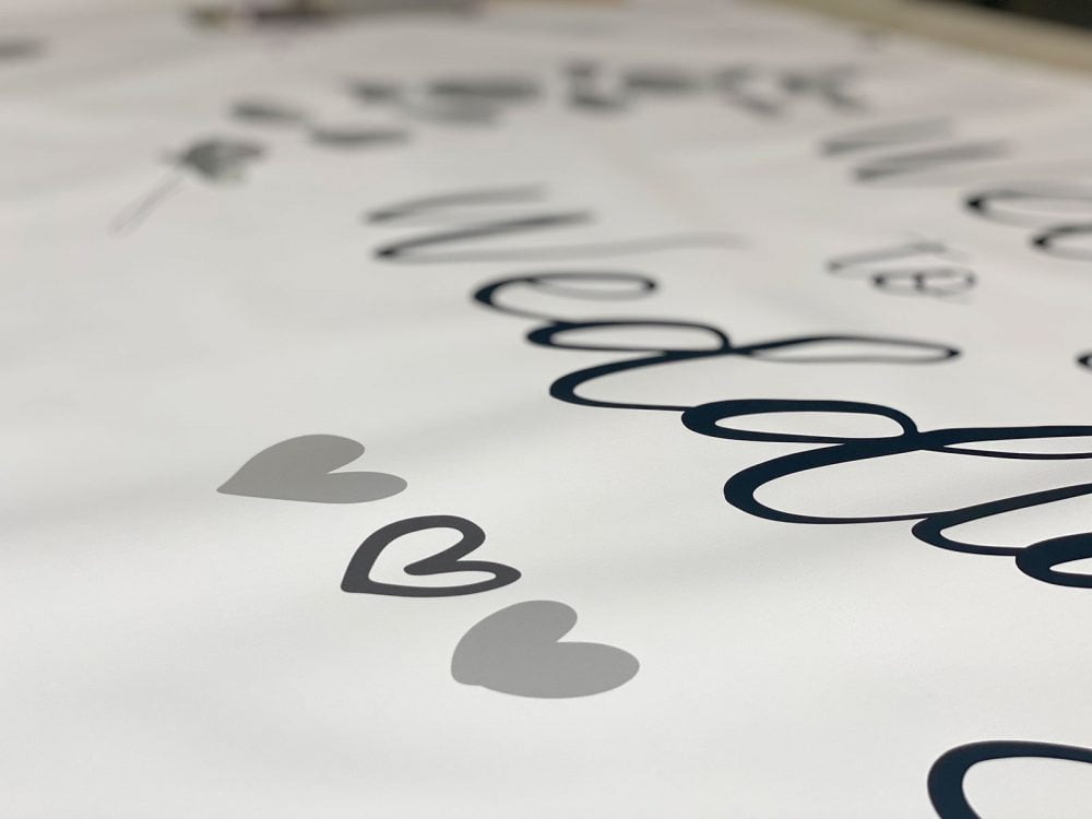We don’t restrict you to set sizes! We’ve made it very easy to design even large custom-sized wedding day banners. We print custom size banners so can print very large banners. Our online designer is responsive, meaning that our clever system creates a custom artboard based on the size of banner you choose. For example, if you require a custom banner at 10m x 2m, enter your sizes, and you’ll receive an instant quotation. If you are happy with the price, click the online design button. The designer will then open an artboard at 10m x 2m enabling you to design your banner on the correct sized canvas.