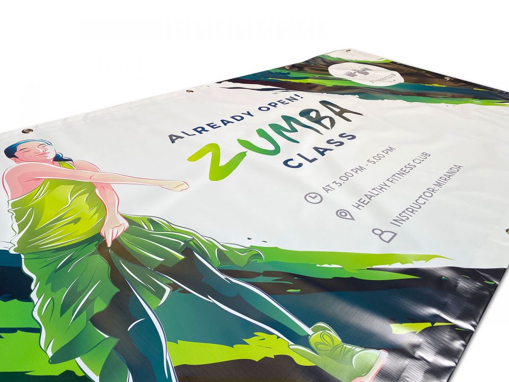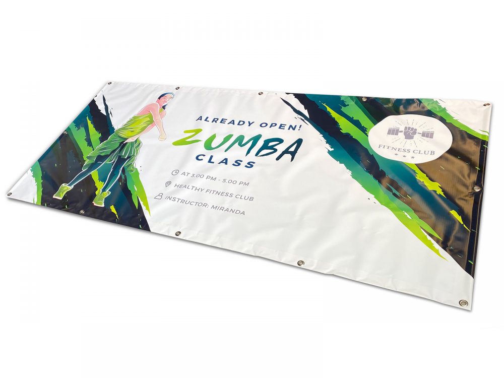 Zumba Banners are printed using high-quality UV print technology. This print process allows us to quickly make high-quality banners that will stand up to the elements.