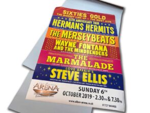 Choose from our best-selling Blueback paper for indoors/outdoors. Choose our Satin paper for art-quality prints. Ask for PVC material for almost indestructible posters or our self-adhesive posters which stick to anything.